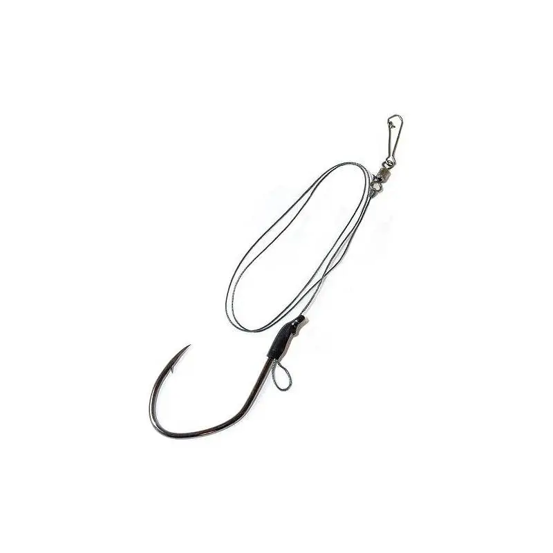 Bas de ligne de plus ou moins 60cm monté sur émerillon à agrafe 1/0 avec un hameçon silure 4/0 ou 6/0 avec boucle d’accrochage (pour montage flottant, cheveu pour montage flottant, cheveu pour accroche pelote de vers, etc…)